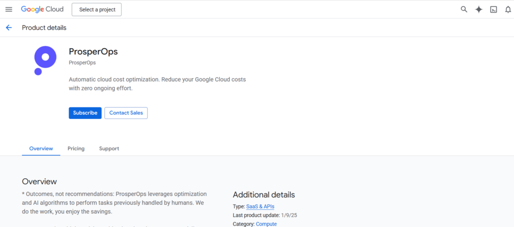 Through Google Cloud Marketplace, customers can quickly procure ProsperOps and begin optimizing cloud spend without the complexity of manual commitment management. Charges for ProsperOps made through the Marketplace also count towards Enterprise Agreement consumption, helping you meet minimum spend thresholds more efficiently.