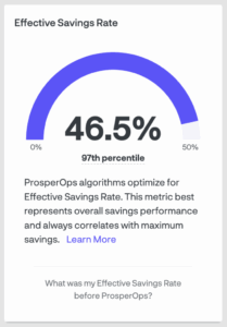 We have integrated Effective Savings Rate (ESR) benchmarking data from our 2025 AWS Compute ESR Benchmark Report directly into the ProsperOps console to let customers quantify their savings performance relative to industry peers. ESR is a FinOps standard metric that measures realized savings from rate optimization activities. This integration enables teams to understand where they stand and their outstanding savings potential.