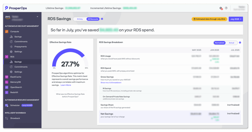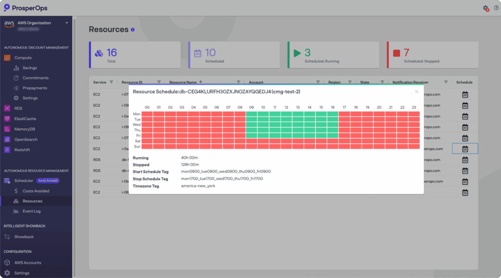 Earlier this year, we launched ProsperOps Scheduler™, the only cloud resource scheduler that integrates with rate optimization automation. Now, we’ve expanded support to Amazon RDS, enabling customers to schedule RDS resources just like EC2 instances. This is especially valuable for non-production environments—like dev, staging, or UAT—where databases don’t need to run 24/7. Engineers get distributed control to manage schedules, while FinOps teams retain centralized visibility into schedules, state changes, and cost avoidance.